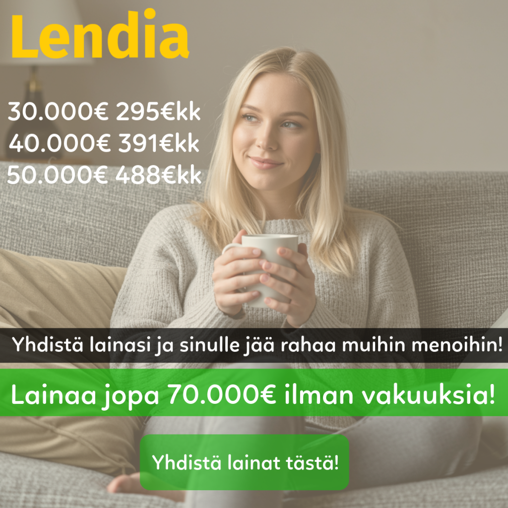 Lendia on erikoistunut isojen yhdistelylainojen kilpailutukseen! Lendian kautta on erityisen helppoa saada 20.000 – 70.000€ kokoisia yhdistelylainoja! Lendialla on kymmeniä tuhansia tyytyväisiä asiakkaita Suomessa!
